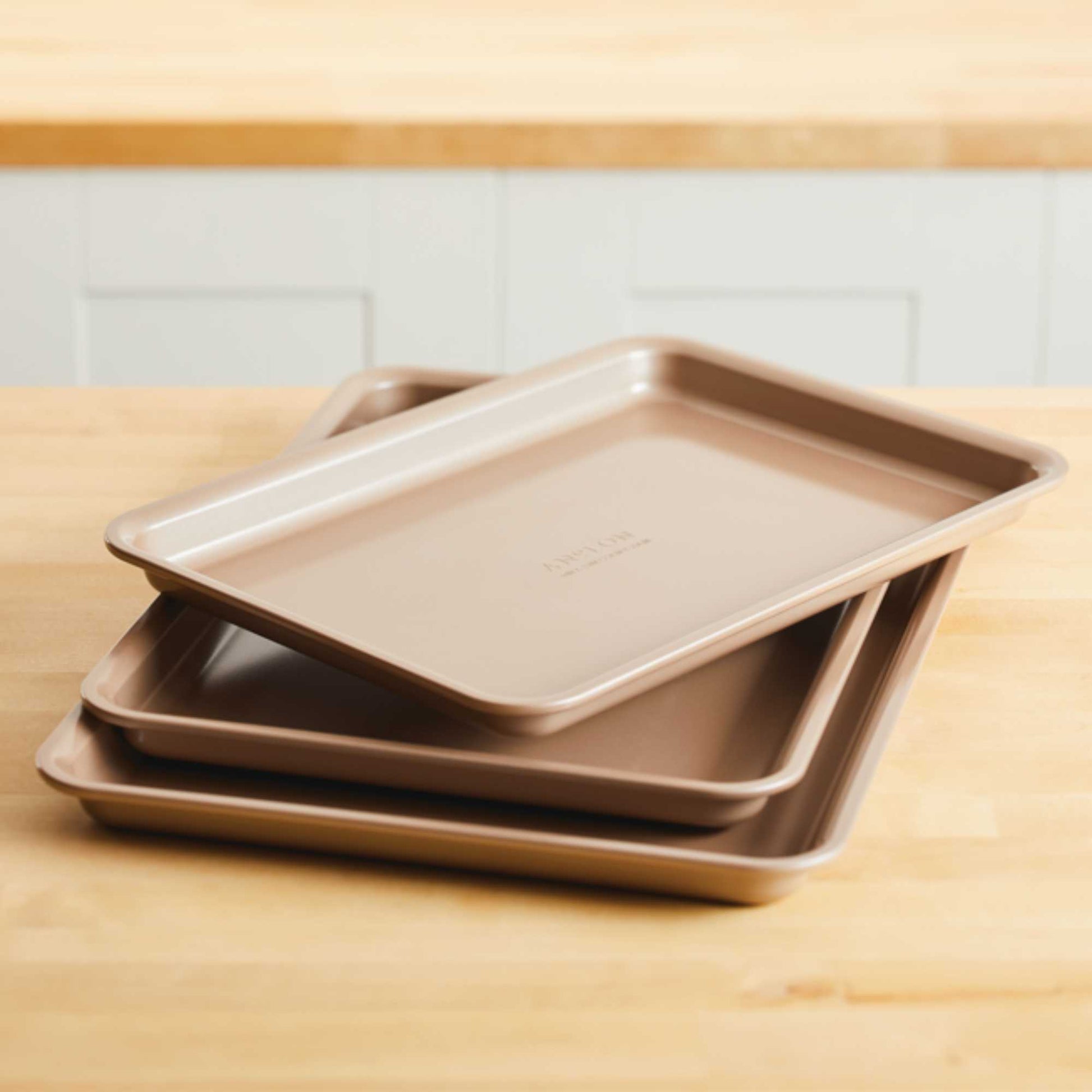 Bring your baking ideas to life with the Anolon Gourmet 3-Piece Bakeware Set. Crafted from heavy-gauge steel, these baking trays resist warping and ensure even heat distribution for reliable results every time.