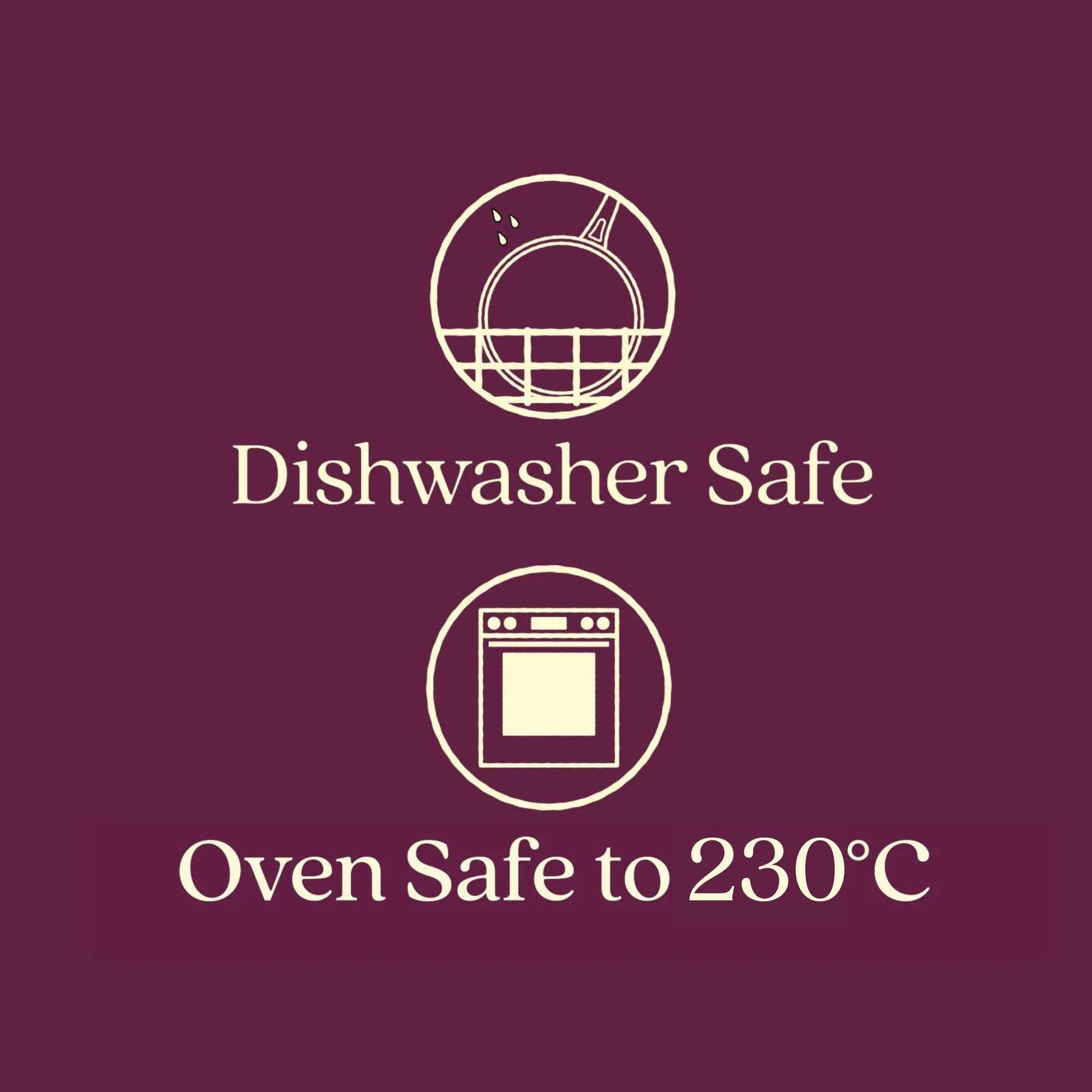 - Rolled rims provide a steady grip when lifting in and out of the oven.